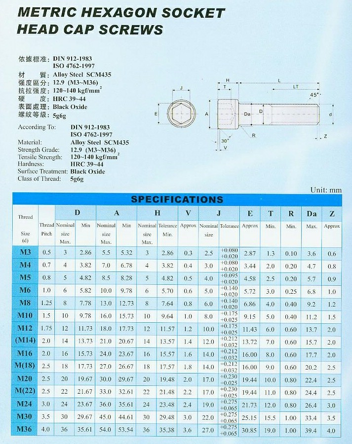 參考標準:DIN912/ GB70/ ISO4762/ ANSI B18.3/ JISB1176