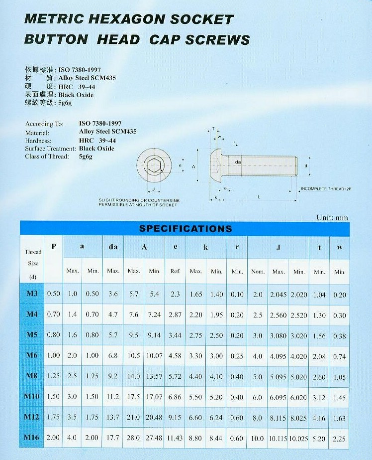 熱處理:HRC39-44    表面:本色或鍍鋅,鎳(去氫脆)