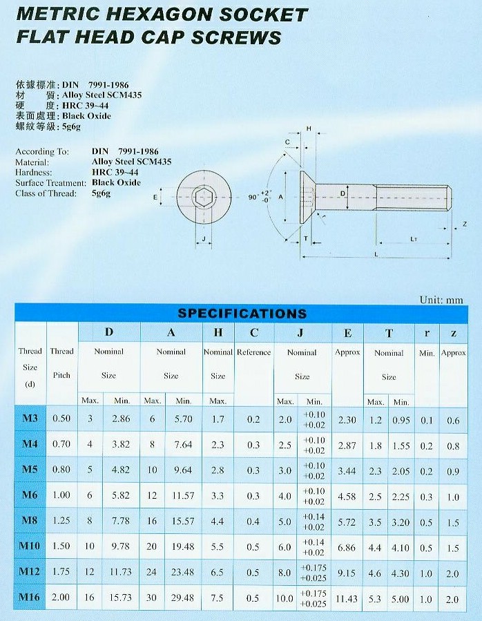 高強度內六角沉頭螺絲 DIN7991/ ANSI B18.3