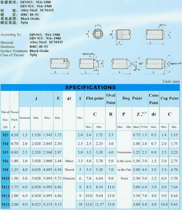 參考標準:DIN913/DIN914/DIN915/DIN916