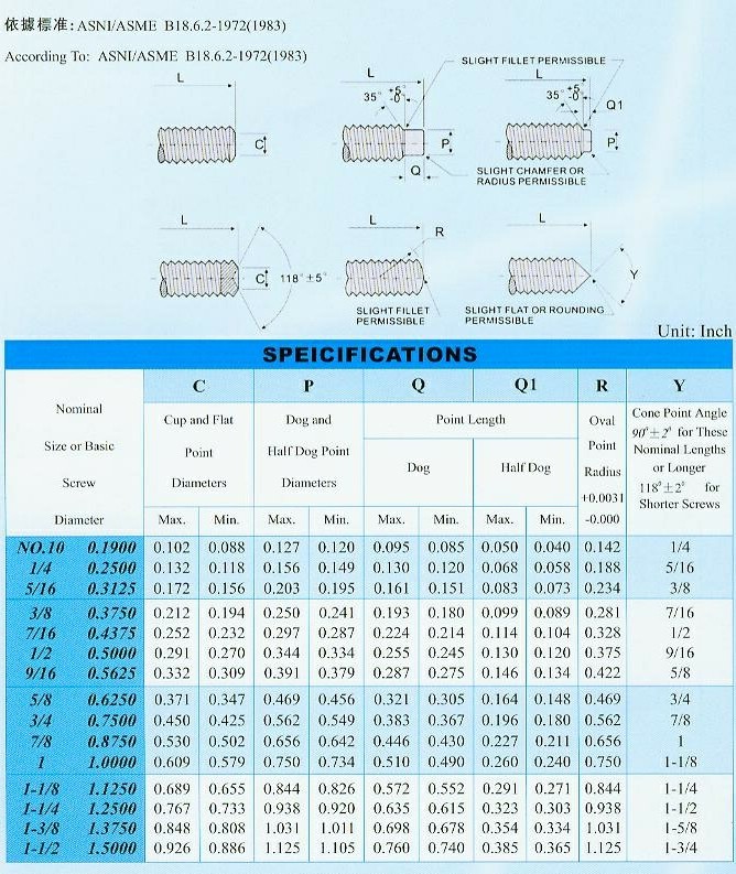 12.9級美制緊定螺絲(技術參數)