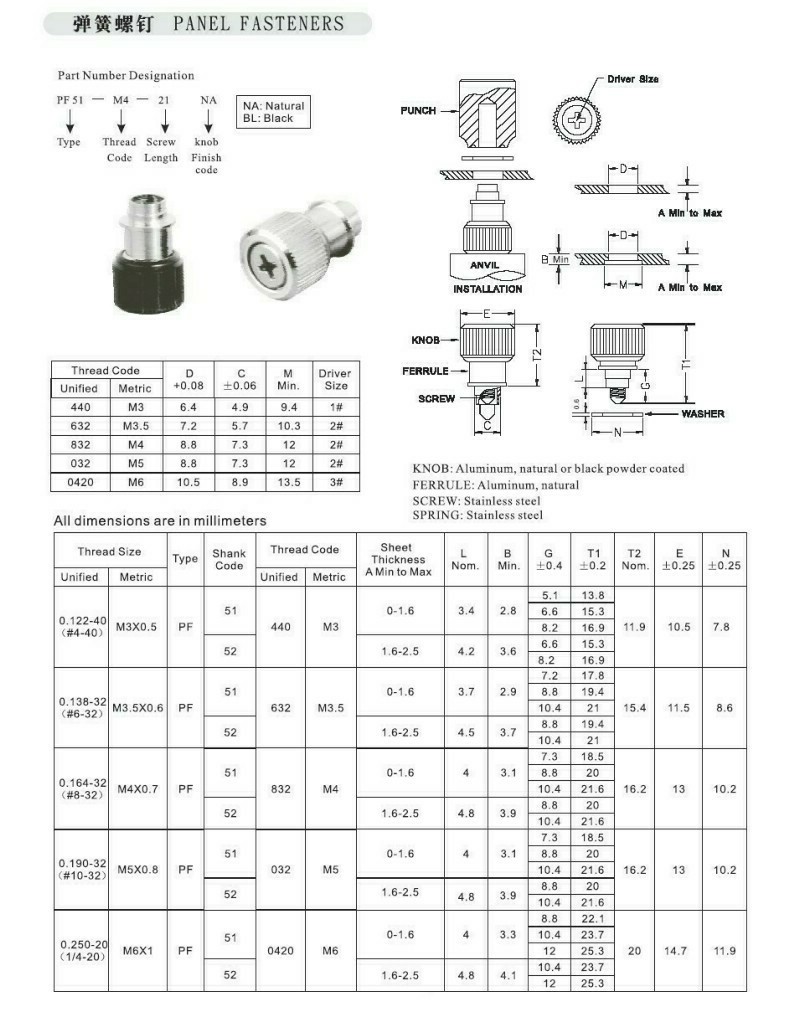 蘇州易扣緊固件專業(yè)生產(chǎn)各種規(guī)格的面板螺釘PF51及PF52型面板螺釘。